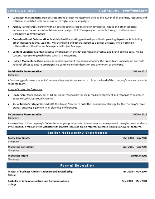 An appealing marketing manager resume highlights key skills and accomplishments, while also speaking to your leadership abilities and potential. It lets employers know you've got the hands-on skills, as well as the strategic skills to progress your career to the next stages. Take a look at our Professional marketing & advertising manager resume sample to get some tips on how to up your resume game.